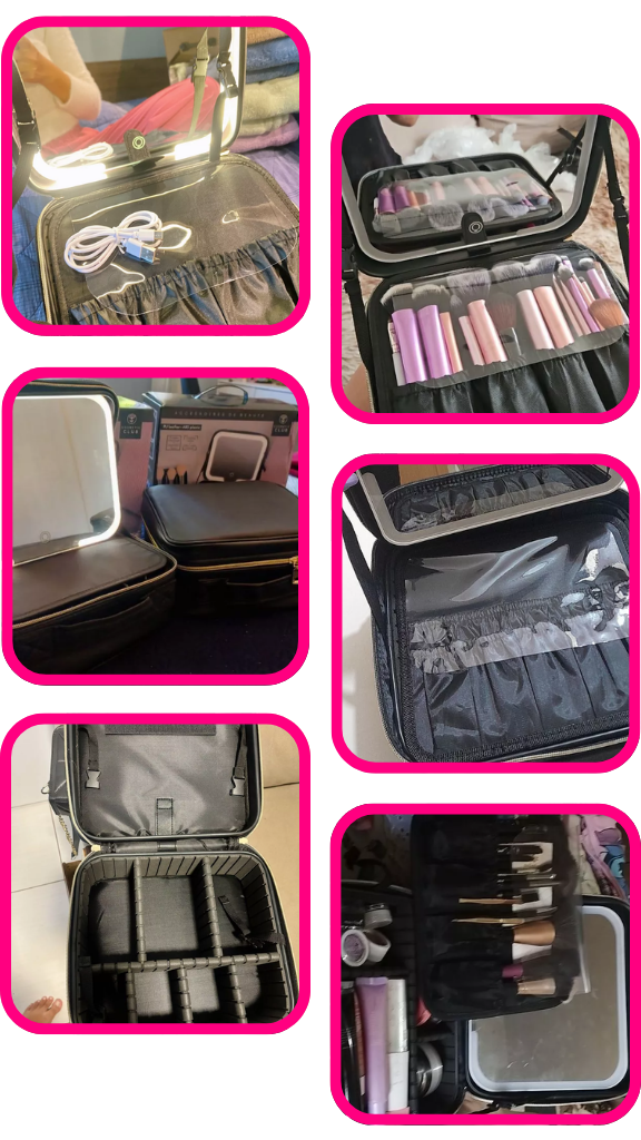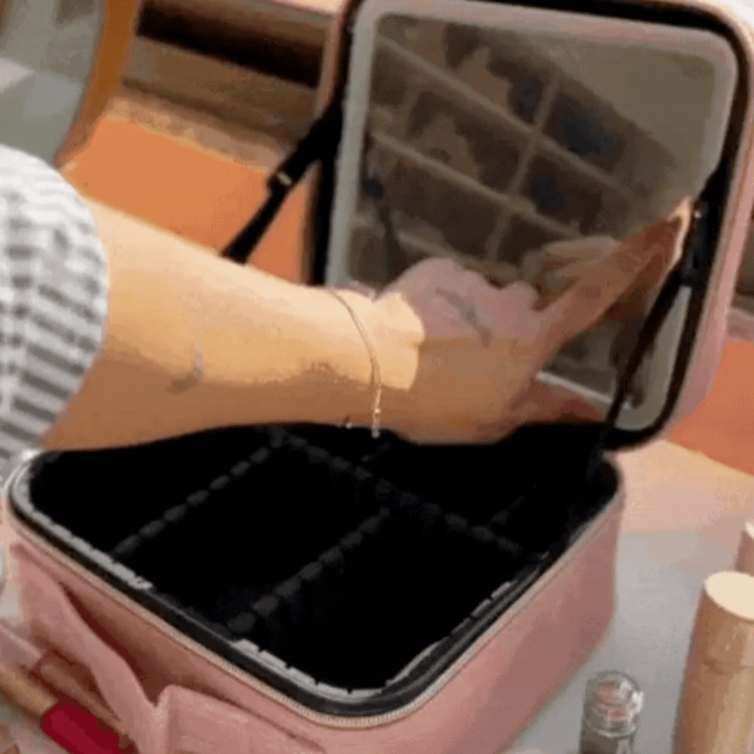 Com divisórias ajustáveis, você pode personalizar os compartimentos conforme o tamanho e o tipo de itens que deseja armazenar, como pincéis, bases, batons e etc.